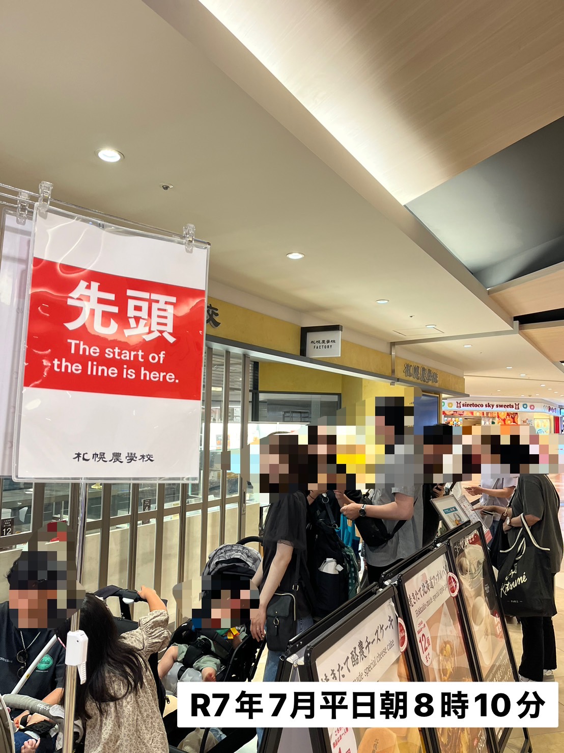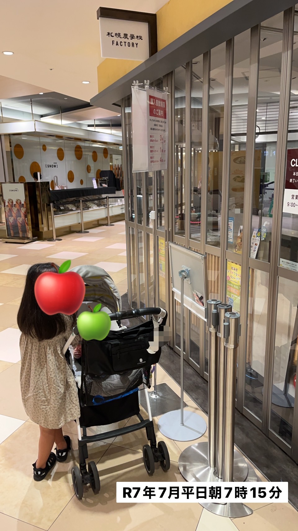 1週間前に行った知り合いが、8時くらいに行ってももうすごい並んでいたとの情報をくれたので、我が家は7時15分から並ぶことにしました!並ぶ場所はとても分かりやすくなっていました。1番だったおかげで、ベビーカー有でしたがスペースを十分に確保できてありがたかったです。その後も30分くらいは誰も来なかったですが、8時半くらいまでにはあっという間に30人ほどの列ができていました!!