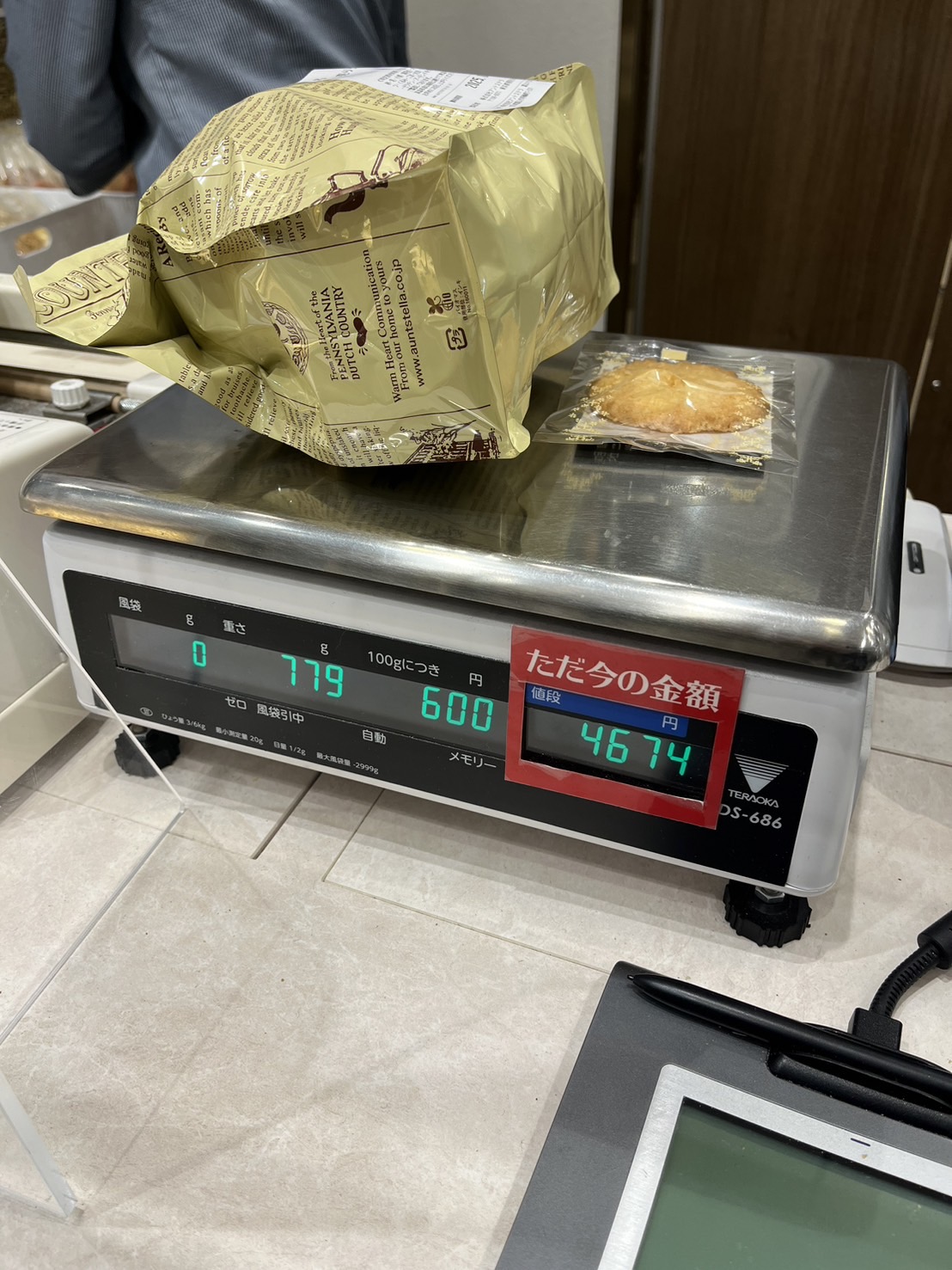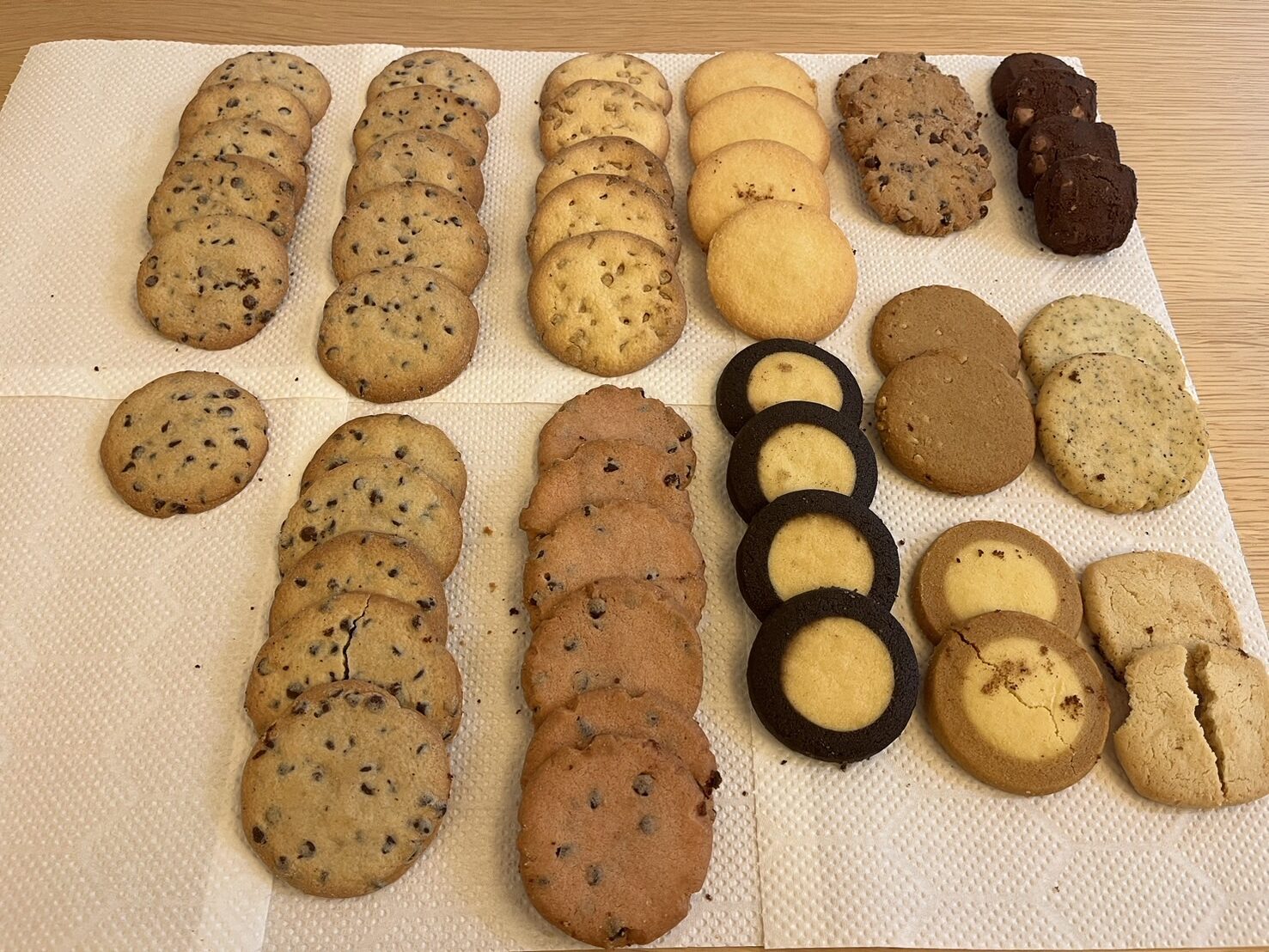 ネットで見た通り、しっかりマチを広げて、まずは一段目にチョコチップクッキーなどの固めのクッキーをぎっりし詰めました。その後は端っこに固めのクッキーいれつつ、中ほどにホロホロ系入れていきました。かなり人が多いので待ちながらですが、制限時間があるわけではないので慌てる必要はなさそうです。なんとかジッパーを閉めてレジへ。